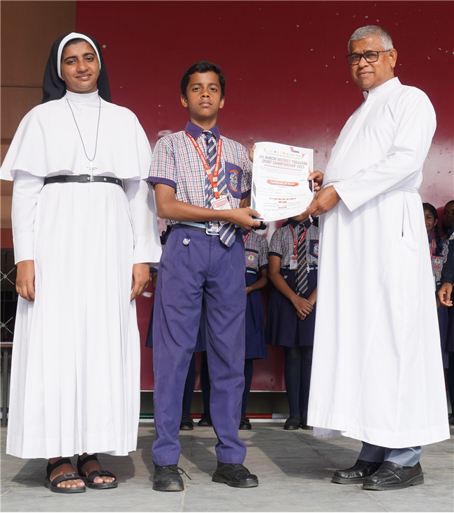 In 6th Ranchi District Yogasana Sport Championship we won 5 gold medal with Kartik Kumar Dube of standard 9C, Niranjan kasi of standard 12 and others.